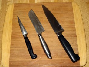 And you don't need to purchase a large set of knives that comes with fifteen different sizes and shapes. Two or three good knives is all you really need. Get a 6 to 8 inch (blade length) cook's or chef's knife, a 3 to 5 inch paring knife and maybe a bread knife or a scalloped slicer and you'll be good to go.